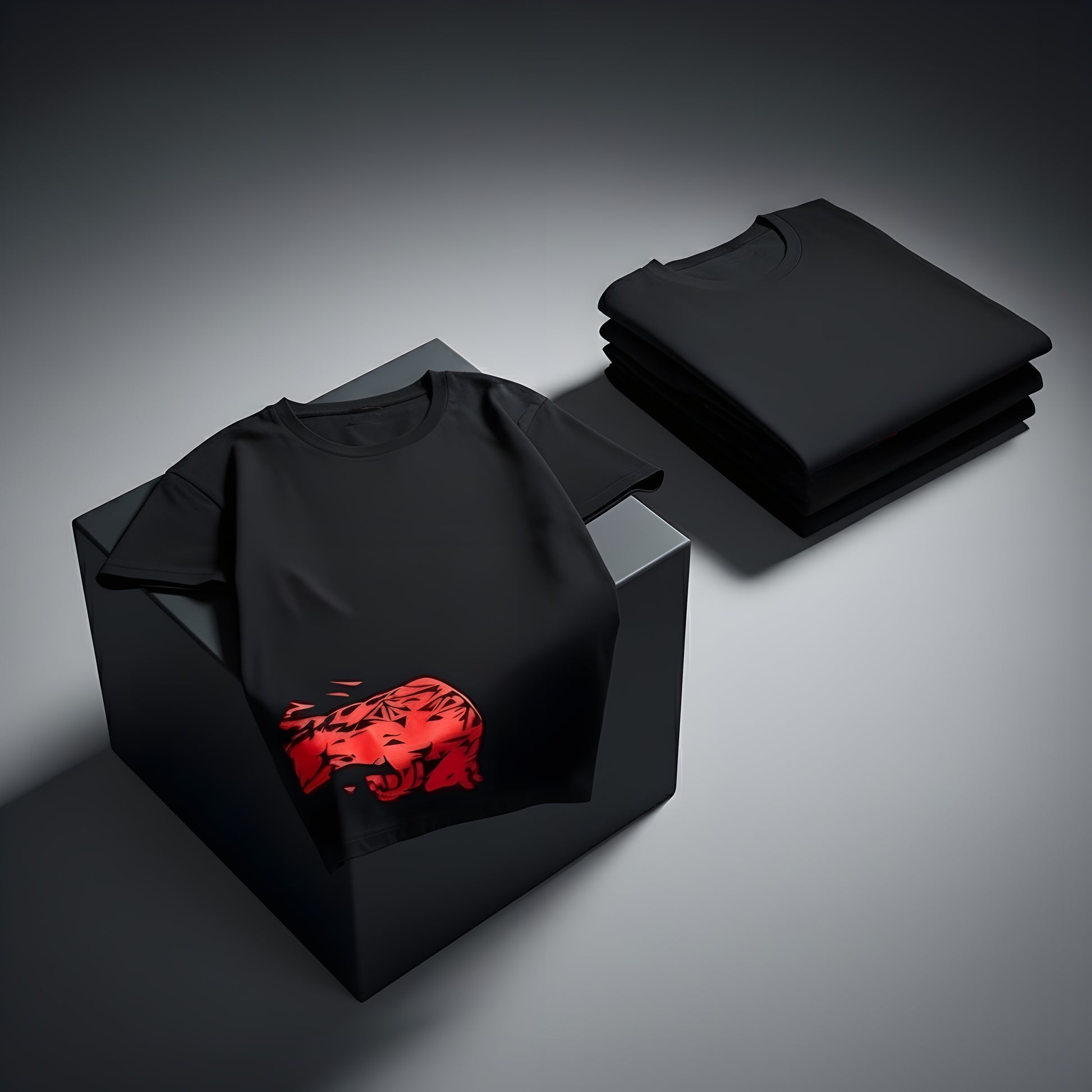 This tee carries the Red Bull bull in fiery red, charging out from the shadows β a symbol of raw energy, fearless drive, and unstoppable momentum.