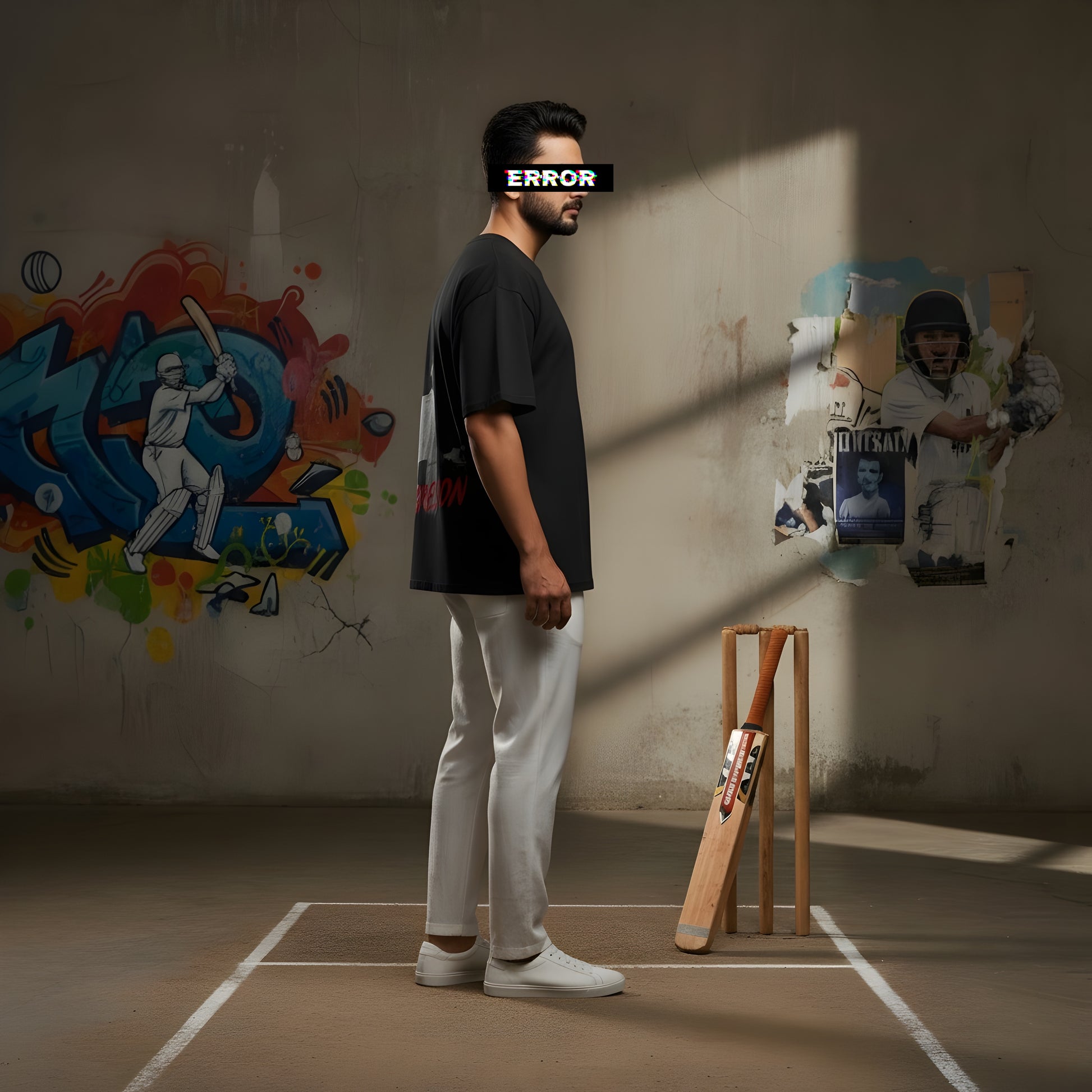 Crafted from premium 240 GSM French Terry, this tee delivers a boxy oversized fit with a crisp structure that feels as good as it looks. Available in classic black and a bold acid wash finish, it’s the perfect canvas to celebrate the King of Cricket.